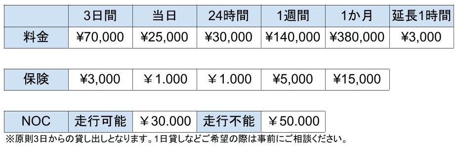 • 固縛セット(タイヤ4個、スリングベルト2本)  ¥4.000-